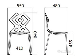 Materiale: Polipropilene (Seduta e Schienale), gambe Acciaio cromato