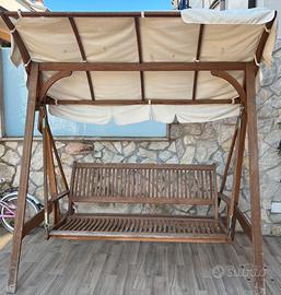 Altalena e tavolo con quattro sedie di legno, come da foto