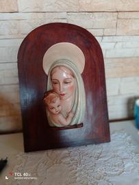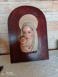 Vendo altorilievo in scagliola dipinto a mano raffigurante la madonna con il bambino Gesù si base in legno