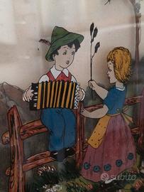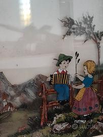 Dipinto su tre strati di vetro effetto 3D databile primi del '900 probabilmente anni 30 vista la tecnica e la cornice.