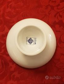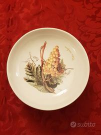 Alzata di porcellana marchiata "le terrine botaniche" Tognana. Raffigura il soggetto "vitis vinifera" e presenta una decorazione a foglie sul bordo.