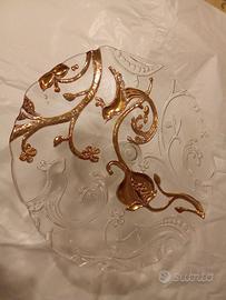 Alzata Ivv, nuova mai usata, placcata in oro. Altezza 16cm, diametro 33cm.