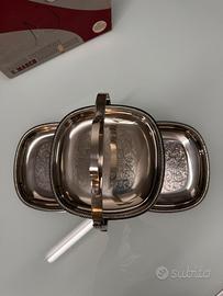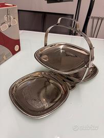 Alzata per dolci o aperitivi in acciaio, pieghevole, nuova, mai usata, completa del suo imballo originale.
