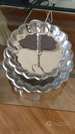 Elegante alzata portafrutta (o anche porta pasticcini ) su 2 piani in impeccabile robusto acciaio inox PIENO con bordi smerlati.