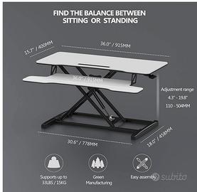 Convertitore da Scrivania In Piedi Grande 36"/91.5cm Standing Desk Converter per Doppio Monitor Regolabile in Altezza con Vassoio per Tastiera e Supporto per Telefono (Bianco)