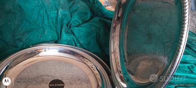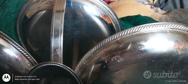 alzatina ALESSI per centro tavola o per buffet con tre diversi piatti in acciaio decorato,uno dei tre vassoi è alzato dagli altri due,per poter fontane di prosciutto e melone,diversi tipi di finger food,o diverse pietanze,anche dolci.
