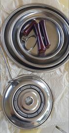 Alzatina ALFRA Alessi anni '70 - 3 piatti, distanziatori in legno di palissandro - diametro piatti cm 25, 21, 15 circa- altezza cm 33 - assolutamente perfetta