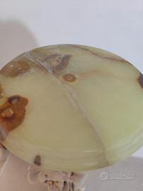 Il piano circolare è in onice verde (quello superiore ha subito un danno ma è stato aggiustato).