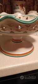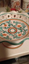 Alzatina, porta frutta, in ceramica, Santo Stefano di Camastra, con colori verde e arancio