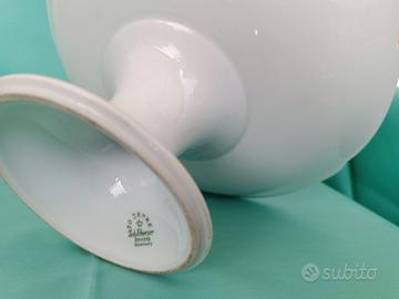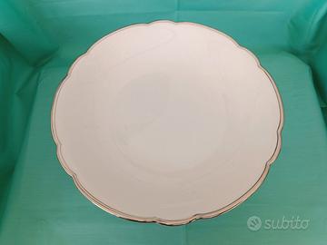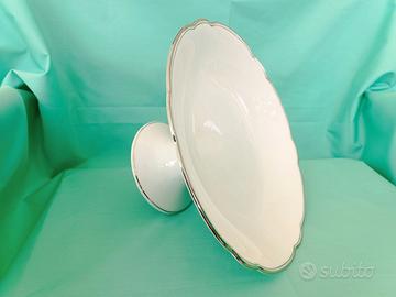 Elegante e antica alzatina in fine porcellana bianca con bordo platino, manifattura bavarese IchScherser, anno 1930.