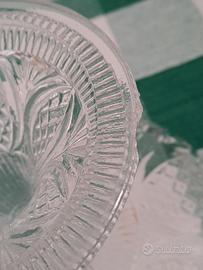 Anni 70/80. In vetro. Perfetta condizione tranne che per una piccola screziatura sul fondo della base che risulta quasi invisibile. La si può vedere nell'ultima foto.