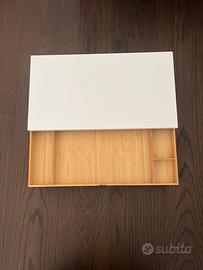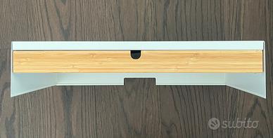 Alzatina per monitor in metallo bianco con cassettino in legno Misure in foto