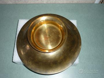 Vendo alzatina portafrutta ottone, smaltato e decorato all'interno. Utilizzabile anche per servire confetti, caramelle, cioccolatini, dolci, ecc.. Articolo praticamente nuovo. Diametro massimo cm 25 circa. Base diametro cm 13. Altezza totale cm 7,5. Peso gr 560. Pagamento contanti se ritiro di persona presso il mio domicilio, oppure bonifico bancario anticipato con aggiunta delle spese di spedizione.