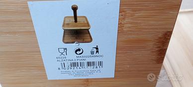 N. 2 alzatina a due piani in legno, primo piatto cm 20 x 20 secondo piatto 15 x 15 altezza cm 25 adatta al contatto con alimenti Per tutte e due euro 10