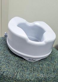 VENDO Alzawater IN FOTO,per disabili da 14 cm di altezza con sistema di bloccaggio laterale compatibile con la maggior parte dei WC in commercio. Sanificabile in autoclave e con una leggera inclinazione in avanti per ridurre la flessione dell'anca.L'alzawater per disabili ONDA è un ausilio pensato e progettato per tutte quelle persone che hanno difficoltà nel sedersi o nell'alzarsi nell'uso del water, come anziani e utenti in fase post-operatoria. L'area della sedutaè ergonomica e riduce la pressione offrendo un maggior comfort all'utente.La leggera inclinazione in avanti della seduta aiuta a mantenere una corretta postura, riduce la flessione dell'anca e dell'articolazione del ginocchio. La seduta dell'alzawater per disabili e anziani da 14 cm con fermi laterali è caratterizzata da due aperture, una nella parte frontale e una nella parte posteriore che permettono un migliore accesso per l'igiene personale.