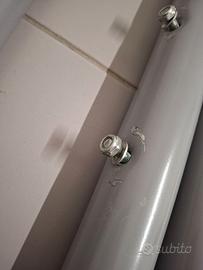 Lo stand è stato utilizzato all'aperto e sono presenti tracce di ruggine nei punti di incastrodei tubi (come visibile in foto). Difetto solo estetico in connessioni nascoste (non visibile quando montato). La stabilità e la sicurezza della struttura non sono compromesse, i pezzi si montano e smontano regolarmente. Il tessuto dell'amaca è in buone condizioni.
