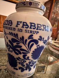Contenitore in ceramica di amarene In sciroppo dell’antica azienda FABBRI. Oggetto vintage per collezionisti Produzione 40 anni fa circa. Non aperto. Contiene al suo interno le amarene denocciolate dell’azienda FABBRI. Peso netto 1,2 kg.