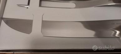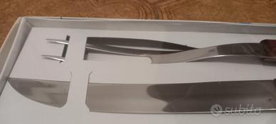 vendo forchettone e coltello AMC, acciaio e legno. nuovi, ancora in imballo originale. misurano cm 30 circa (32cm il coltello)