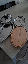 kit completo pentola ovale AMC con vassoio, griglia, tagliere, praticamente nuova