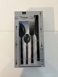 Set posate nere da 16pz, marca Amefa, collection Vintage, colore nero, materiale acciaio, nuove mai utilizzate complete di scatola.