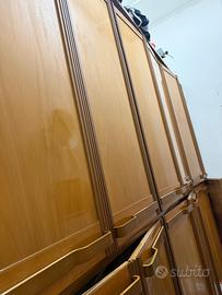Vendo spazioso armadio a moduli, perfetto per essere utilizzato come guardaroba, scarpiera o capiente dispensa per la casa. Il mobile presenta una finitura in legno tonalità miele con eleganti venature a vista e maniglie integrate dal design ergonomico.