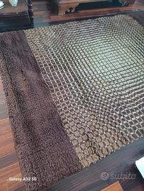 un ampio tappeto moderno di design, pura lana,2 fasce marroni ,parte centrale quadretti beige degradanti dal centro verso I bordi .l'effetto è una zona più chiara che dal centro si amplia verso i margini,complemento raffinato per un arredamento moderno