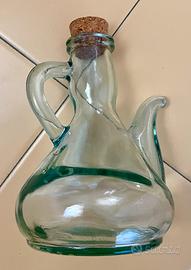 Ampolla per olio in vetro. Larghezza massima 12, altezza 27 compreso tappo. Perfetta