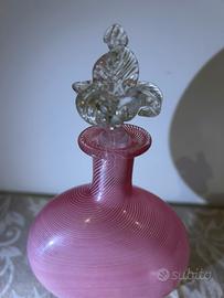 Splendida ed elegante bottiglia decorativa/ampolla porta profumo in pregiato vetro di Murano, realizzata interamente a mano con la raffinata tecnica della Filigrana.