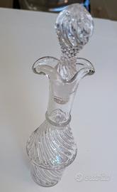 Set di 2 ampolle con vassoio in vetro. Dimensioni: - altezza ampolle con tappo 20 cm - lunghezza vassoio 15 cm