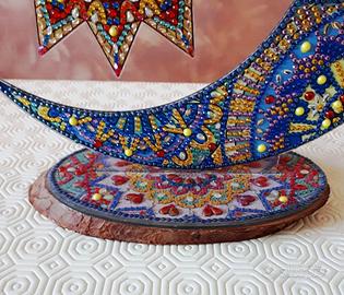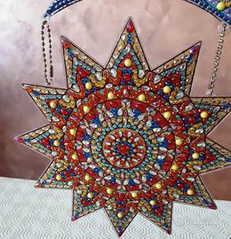 Manufatto d’artigianato etnico realizzato interamente a mano (30cm di altezza e larghezza), ispirato al simbolismo ancestrale del Sole e della Luna, emblema di equilibrio, ciclicità e armonia tra energie opposte.