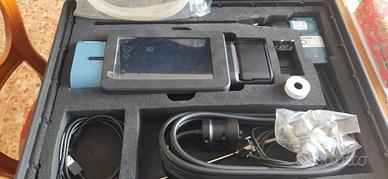 Analizzatore di combustione a 3 celle (O2+CO-H2 8.000 ppm + NO) , stampante integrata, tiraggio secondo normativa UNI10845, sonda prelievo fumi con puntale intercambiabile da 180 mm, trappola anticondensa integrata nello strumento, sonda temperatura aria comburente, tubo misura pressione valvola gas, carica batteria e spina europea, valigia in plastica rigida. Certificato di taratura valido sino al 26/09/2025