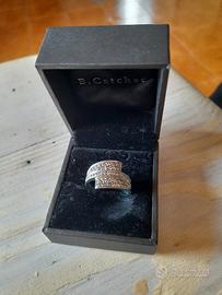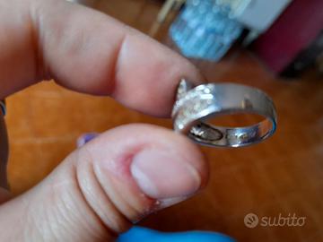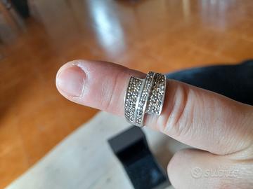 anello in argento e zirconi bianchi perfettamente conservato. vendo perché non mi entra più. misura 12,5
