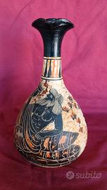 Riproduzione artigianale antichizzata. Piccola anfora prodotta e dipinta a mano in Grecia. Altezza 22cm., larghezza 13cm., peso 800g.