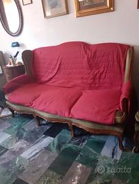 anfora in terracotta con relativo treppiede in ferrobattuto, poltrona tre posti e due poltrone velluto.