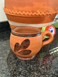 Distributore d’acqua in terracotta. Incluso il bicchiere. Tutto nuovo, mai utilizzato.