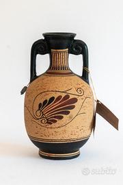 Vendo splendida anfora in ceramica decorata a mano, realizzata in Grecia dalla Stavropoulos Collection. Si tratta di una riproduzione artigianale certificata di un vaso del V - VI secolo a.C., decorato nello stile a figure nere con scene mitologiche e motivi ornamentali tipici dell’epoca classica.