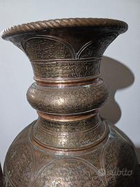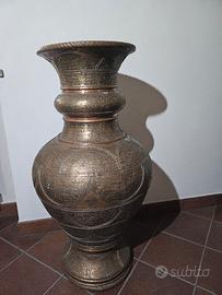 Anfora in rame pesante lavorato. Altezza cm 94 Diametri base e al boccale cm 35 Diametro centrale cm 50