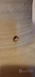 Rustica, come da foto. "Naturalmente leggermente pendente". Unico difetto evidente in foto, uscita così dell'artigiano. Peso consistente, poco più di 19 kg. Misure, alt 80 cm, larg 40 cm. Vuota all'interno, diametro minimo foro 12 cm circa.