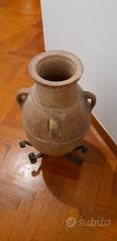 Anfora decorativa (70×35 cm, treppiedi escluso) antica in terracotta, con quattro manici laterali. Risalente agli inizi del 1900, è sorretta da un treppiedi in ferro battuto realizzato da un artigiano della zona su misura.