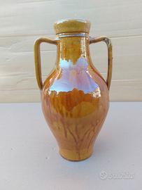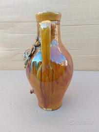 Metti in mostra un pezzo di storia e arte nella tua casa! Questa splendida anfora in ceramica smaltata non è solo un vaso, ma una vera e propria scultura decorativa.