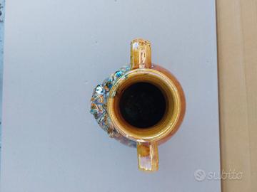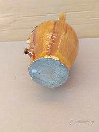 Smaltatura Cangiante: La finitura in smalto lucido sfuma dal marrone ambrato a tonalità di verde e turchese iridescente, creando riflessi unici (la tecnica suggerisce una manifattura artistica).