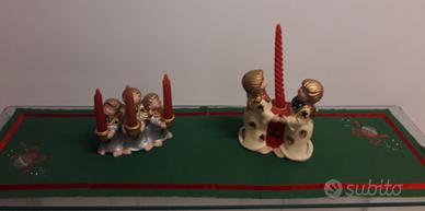Vari angeli decorativi per Natale . Coppia di angeli con candela h cm19×cm18 + un trio di angeli con candele h cm16×cm17 ,entrambi in ceramica dipinta, con propria scatola. Posseggono sul retro un apertura con candelina che illumina dall'interno ed entrambi hanno il costo di euro 12 l'uno, mentre se acquistati insieme euro 20. -Angeli natalizi vari, di cui i due più grandi sono porta candela. Tutti in blocco ad euro 15. Con l'acquisto di tutti gli angeli ci sarà un omaggio