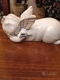 Angelo acquiasantiera più Angelo dormiente ceramica di Caltagirone perfettamente integri