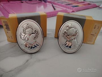 Angelo in argento di valenti nella sua scatola originale.