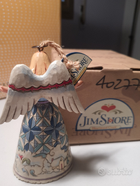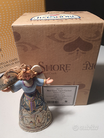 Elegante addobbo da appendere in casa o all'albero di Natale. Angelo di Jim Shore Hearthwood Creek, con paesaggio innevato decorato sulla veste. Resina dipinta a mano effetto legno. Altezza: 12 cm.