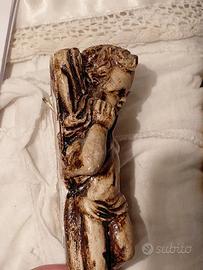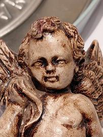 🌟 Oggetto raffigurante un angelo putto con grandi ali finemente scolpite con piume ben dettagliate, e drappo avvolgente