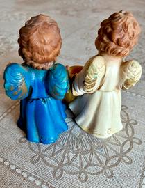 Due statuine firmate A. Lucchesi, dipinte a mano. Sì tratta di statuine molto probabilmente di resina, raffiguranti angioletti con porta candela. Riportano la scritta Hotel Lido Molveno. Misure: altezza 10 cm, base 6 cm. Vendo preferibilmente insieme per 20 euro o per 12 euro ciascuna.