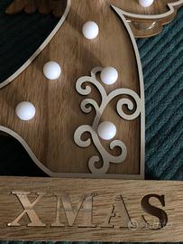 Angioletto in legno XMAS H 34 cm larghezza 20 cm spessore 5 cm Con palline ( 10 led) che si illuminano Con 2 pile AA ( non fornite) Con scatola