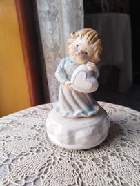 angioletto in ceramica porcellana di Capodimonte altezza 16.5cm sotto carrillon funzionante nuovo con scatolo originale