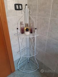 Angolare in ferro smaltato bianco, 3 mensole, 3 piedini. richiudibilee quindi di facile spostamento.